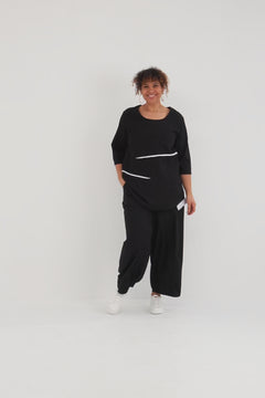 • Details: Round neckline, 3/4 sleeves, side slits & subtle layered look at the hem