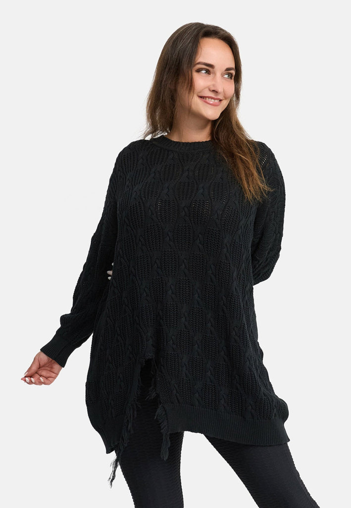 • Details: Fransen-Elemente am Saum, Strickmuster mit Struktur, runder Halsausschnitt